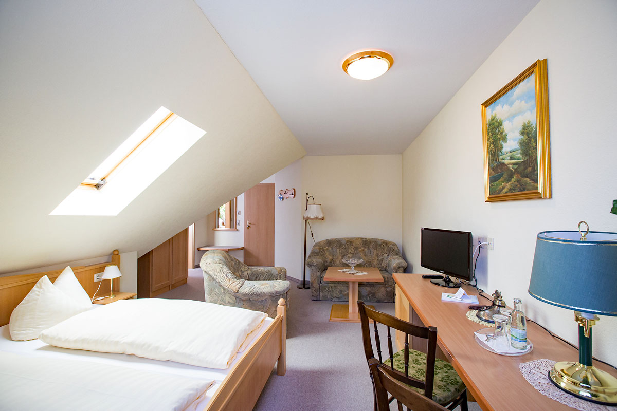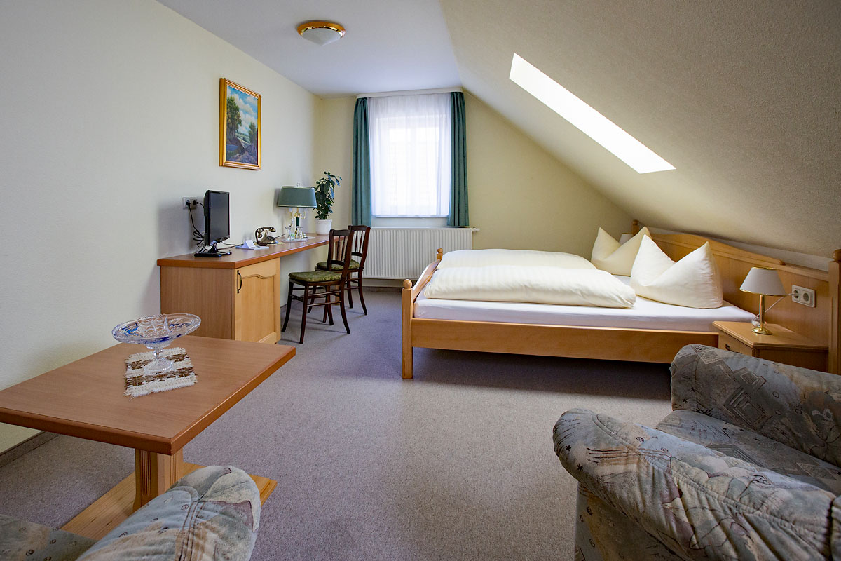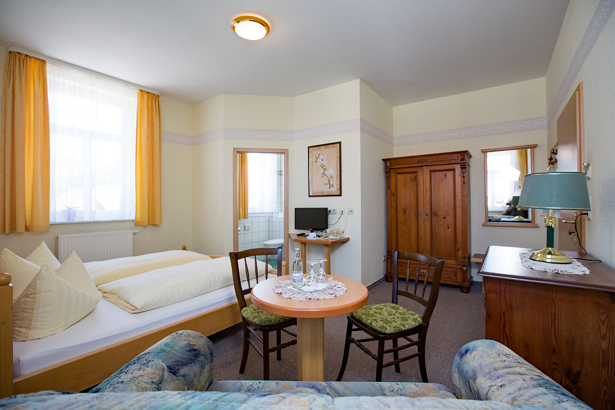 Unser Haus besitzt 2 Einzelzimmer, 11 Doppelzimmer (davon 5 mit Wohnecke und Aufbettung) und 2 großzügige Suiten (mit Innentreppe über 2 Etagen).